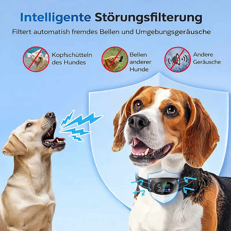 Maximale Sicherheit im Alltag: Ein integrierter Schutzmechanismus verhindert Überkorrekturen und sorgt dafür, dass Ihr Hund nicht unnötig belastet wird. Damit eignet sich der BarkSense AI auch für den täglichen Einsatz – zu Hause, im Garten oder unterwegs.